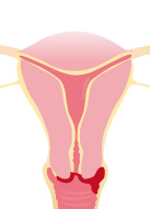 | 2 期 | がんが子宮体部を越えて子宮頸部に拡がったもの(がんは子宮の外に出ていない)。 | ||