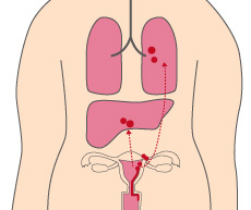 子宮体がんは、性交渉とは無関係で、女性ホルモン(エストロゲン)と関係が深いがんです。妊娠経験のない人、無排卵などの排卵障害のあった人、肥満、糖尿病、高血圧の人もホルモンバランスが崩れ、子宮体がんになりやすい傾向があるとされています。